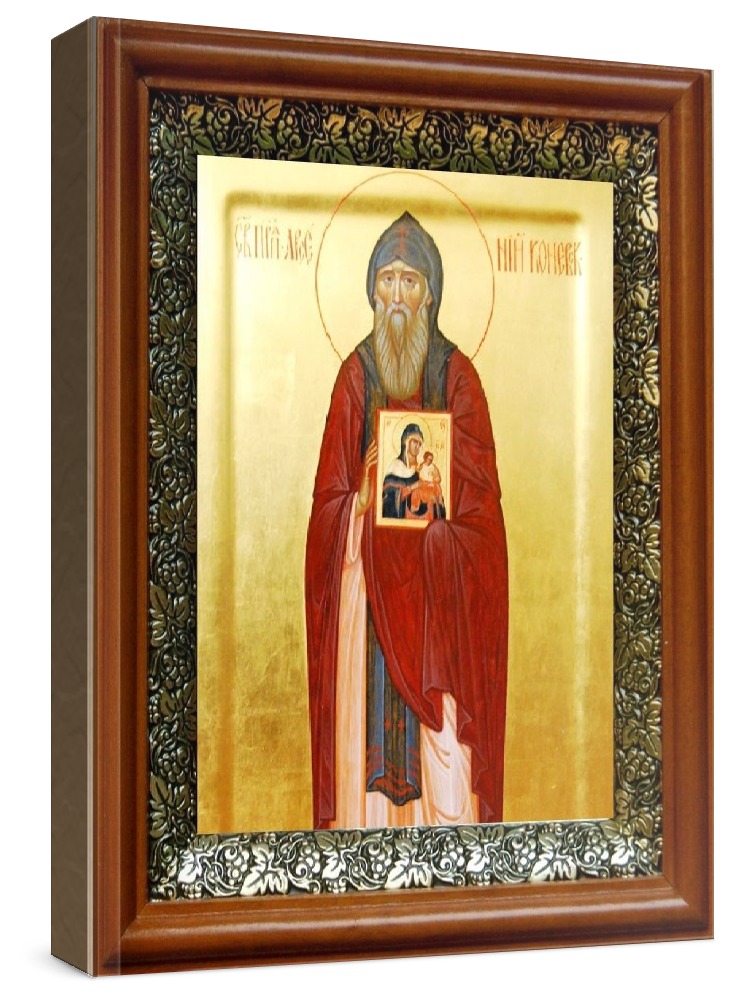 Икона арсений коневский (19х22), светлый киот