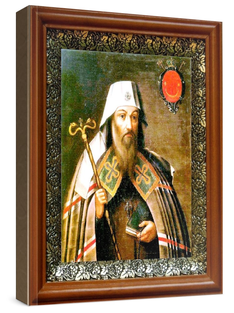 Икона варлаам ясинский (19х22), светлый киот. Лик нанесен методом шелкографии на цельную липовую доску, покрытую левкасом (специальным грунтом под живопись). Использованы минеральные (природные) краски. Размер иконы без киота (см): 13х16, с киотом: 19х22. Киот со стеклом, выполнен из березы и украшен басмой (узор из черненой меди в виде виноградной лозы). Икона освящена.
