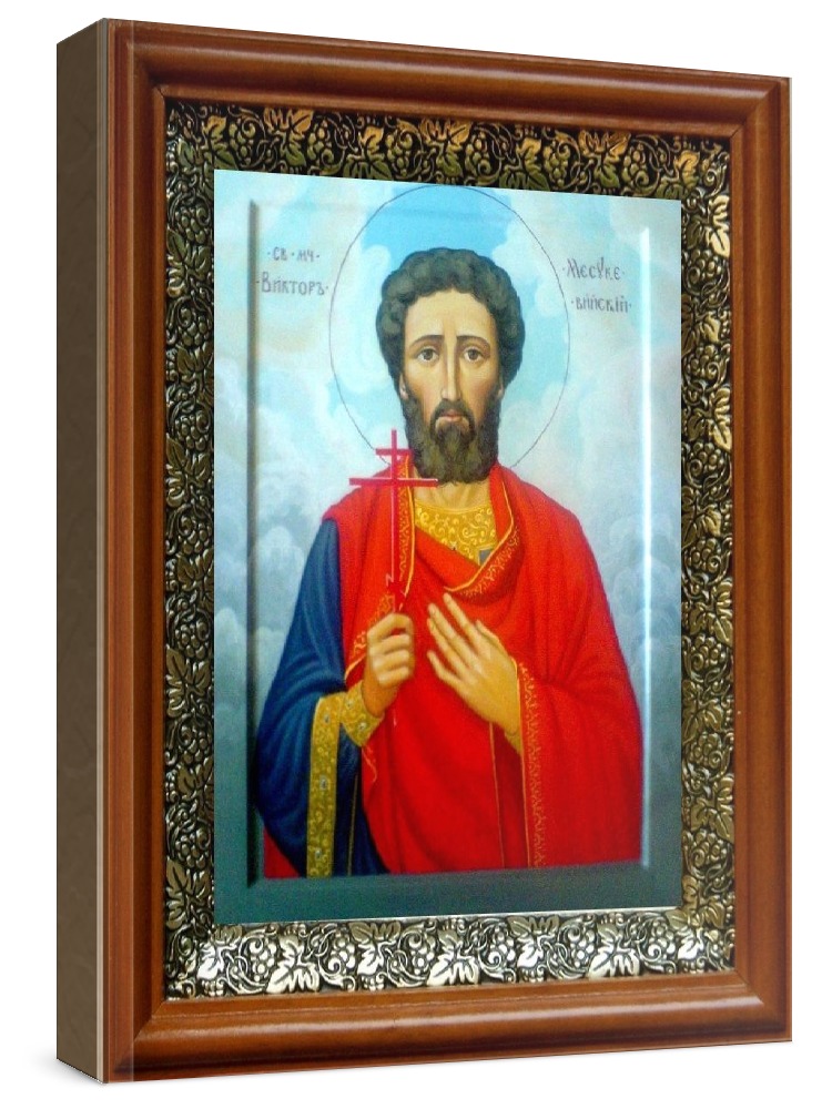 Икона виктор месукевийский (19х22), светлый киот.