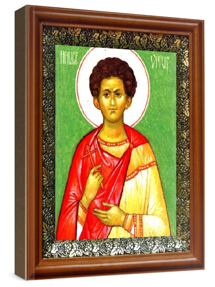 Икона вит римский (19х22), светлый киот. Лик нанесен методом шелкографии на цельную липовую доску, покрытую левкасом (специальным грунтом под живопись). Использованы минеральные (природные) краски. Размер иконы без киота (см): 13х16, с киотом: 19х22. Киот со стеклом, выполнен из березы и украшен басмой (узор из черненой меди в виде виноградной лозы). Икона освящена.