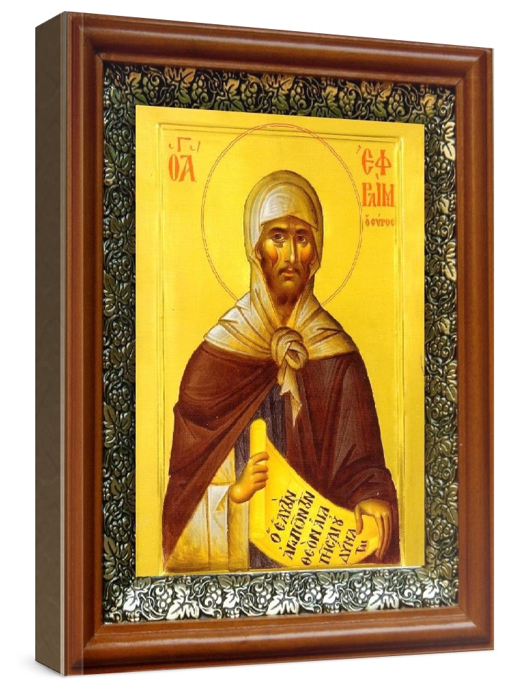 Икона ефрем сирин (19х22), светлый киот. Лик нанесен методом шелкографии на цельную липовую доску, покрытую левкасом (специальным грунтом под живопись). Использованы минеральные (природные) краски. Размер иконы без киота (см): 13х16, с киотом: 19х22. Киот со стеклом, выполнен из березы и украшен басмой (узор из черненой меди в виде виноградной лозы). Икона освящена.