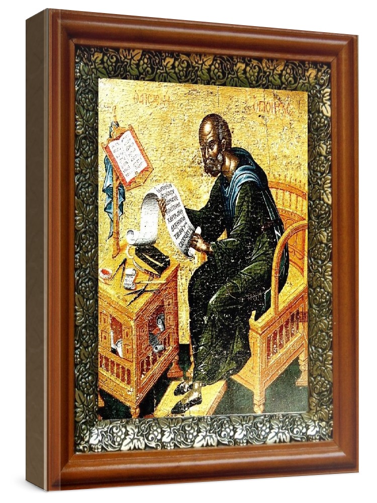 Икона иосиф песнописец (19х22), светлый киот. Лик нанесен методом шелкографии на цельную липовую доску, покрытую левкасом (специальным грунтом под живопись). Использованы минеральные (природные) краски. Размер иконы без киота (см): 13х16, с киотом: 19х22. Киот со стеклом, выполнен из березы и украшен басмой (узор из черненой меди в виде виноградной лозы). Икона освящена.