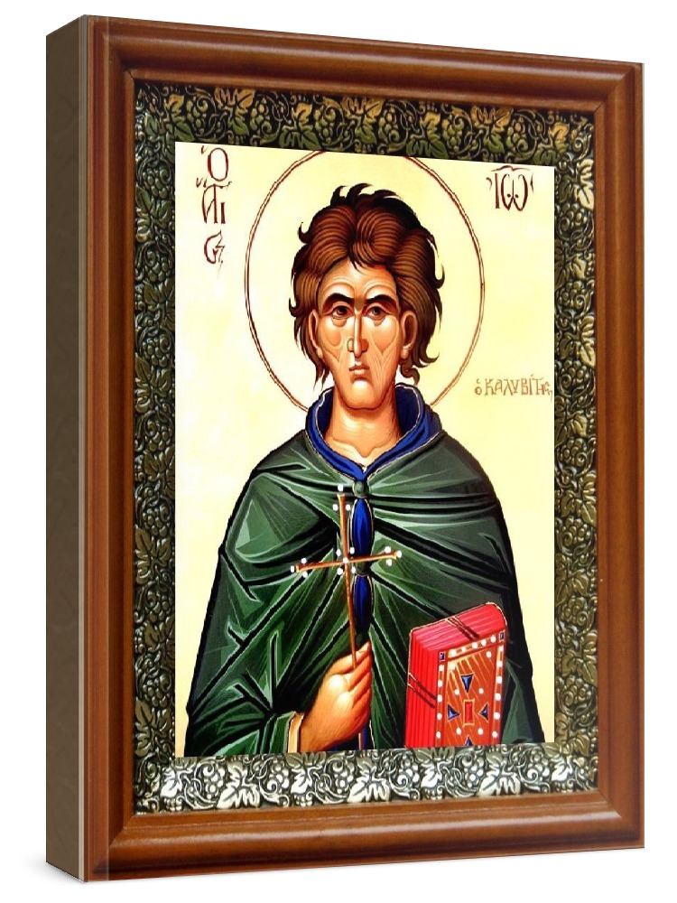 Икона павел фивейский (19х22), светлый киот. Лик нанесен методом шелкографии на цельную липовую доску, покрытую левкасом (специальным грунтом под живопись). Использованы минеральные (природные) краски. Размер иконы без киота (см): 13х16, с киотом: 19х22. Киот со стеклом, выполнен из березы и украшен басмой (узор из черненой меди в виде виноградной лозы). Икона освящена.