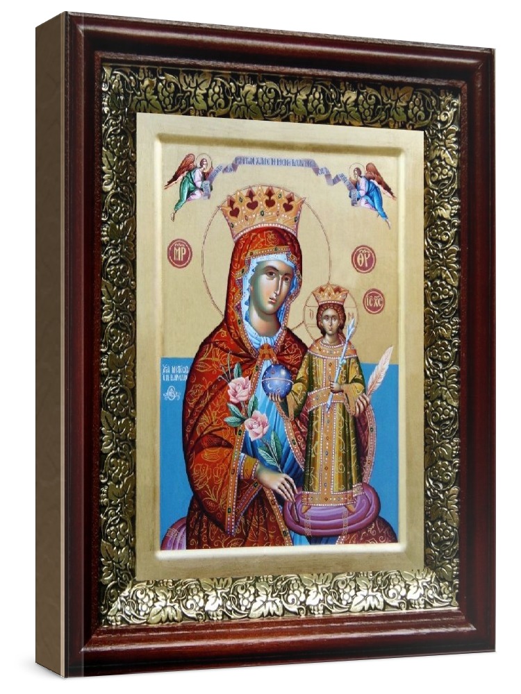 Икона неувядаемый цвет (19х22), темный киот. Икона выполняется на заказ. Срок изготовления - 2-5 дней. Лик нанесен методом шелкографии на цельную липовую доску, покрытую левкасом (специальным грунтом под живопись). Использованы минеральные (природные) краски. Размер иконы без киота (см): 13х16, с киотом: 19х22. Киот (рамка) выполнен из березы и украшен басмой (узор из черненой меди в виде виноградной лозы). Икона освящена.