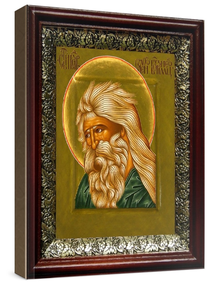 Икона симеон богоприимец (19х22), темный киот. Икона выполняется на заказ. Срок изготовления - 2-5 дней. Лик нанесен методом шелкографии на цельную липовую доску, покрытую левкасом (специальным грунтом под живопись). Использованы минеральные (природные) краски. Размер иконы без киота (см): 13х16, с киотом: 19х22. Киот (рамка) выполнен из березы и украшен басмой (узор из черненой меди в виде виноградной лозы). Икона освящена.