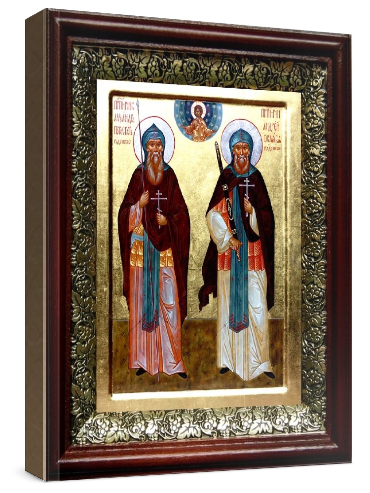Икона александр пересвет и андрей ослябя (19х22), темный киот