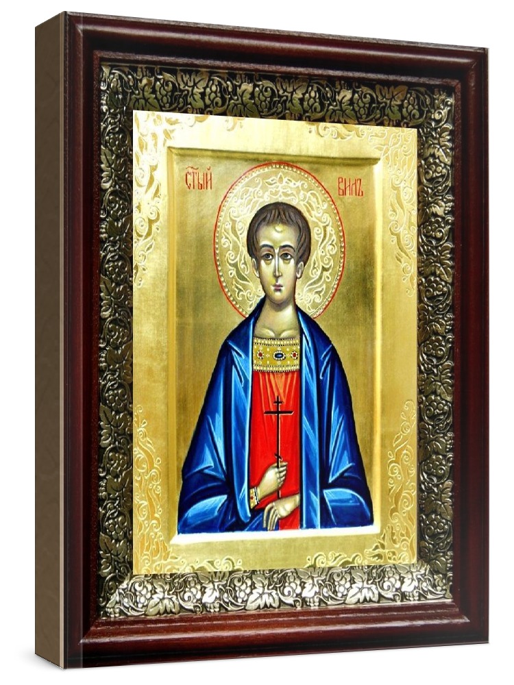 Икона вил сирийский (19х22), темный киот. Лик нанесен методом шелкографии на цельную липовую доску, покрытую левкасом (специальным грунтом под живопись). Использованы минеральные (природные) краски. Размер иконы без киота (см): 13х16, с киотом: 19х22. Киот со стеклом, выполнен из березы и украшен басмой (узор из черненой меди в виде виноградной лозы). Икона освящена.