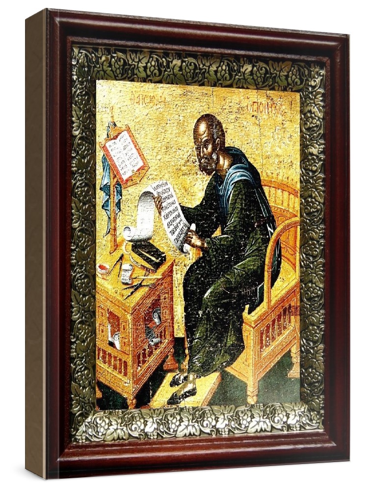 Икона иосиф песнописец (19х22), темный киот. Лик нанесен методом шелкографии на цельную липовую доску, покрытую левкасом (специальным грунтом под живопись). Использованы минеральные (природные) краски. Размер иконы без киота (см): 13х16, с киотом: 19х22. Киот со стеклом, выполнен из березы и украшен басмой (узор из черненой меди в виде виноградной лозы). Икона освящена.