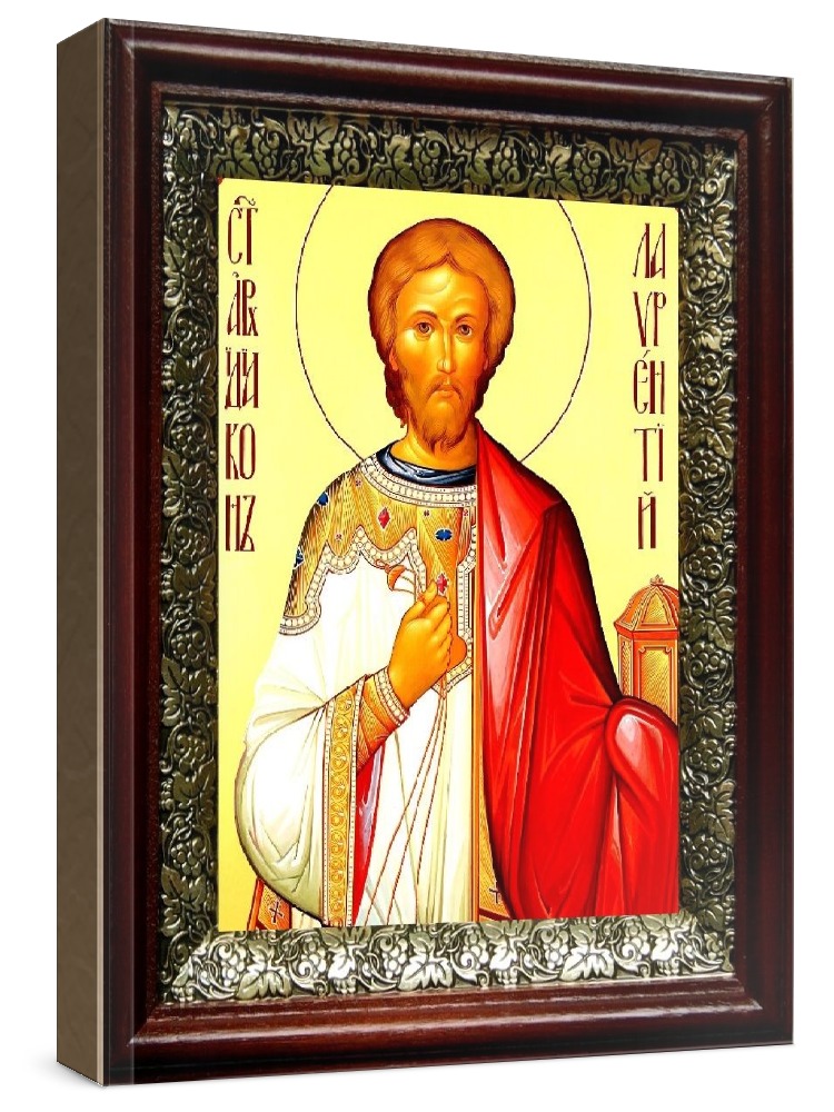 Икона лаврентий, архидиакон (19х22), темный киот.