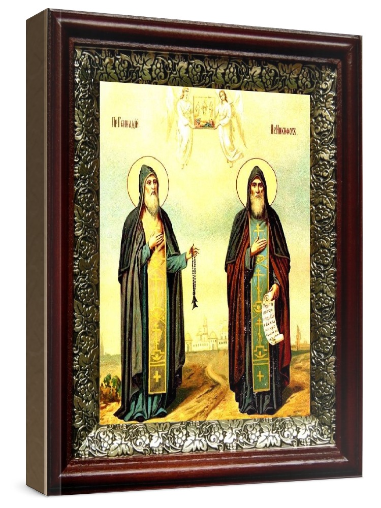 Икона никифор и геннадий важеозерские (19х22), темный киот.