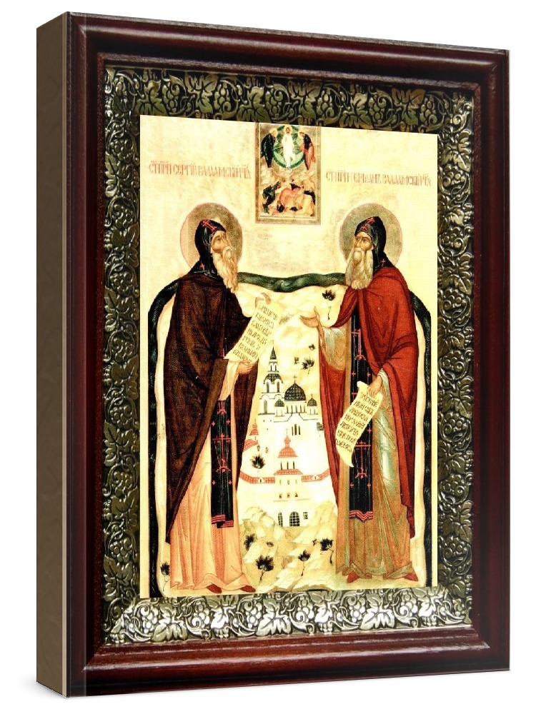 Икона сергий и герман валаамские (19х22), темный киот