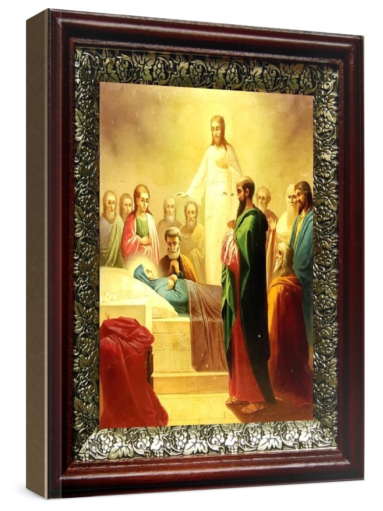 Икона успение пресвятой богородицы (19х22), темный киот. Лик нанесен методом шелкографии на цельную липовую доску, покрытую левкасом (специальным грунтом под живопись). Использованы минеральные (природные) краски. Размер иконы без киота (см): 13х16, с киотом: 19х22. Киот со стеклом, выполнен из березы и украшен басмой (узор из черненой меди в виде виноградной лозы). Икона освящена.