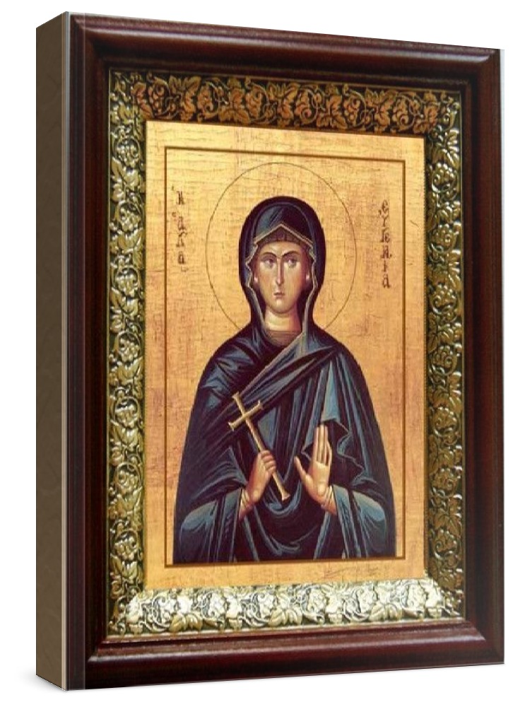 Лик нанесен методом шелкографии на цельную липовую доску, покрытую левкасом (специальным грунтом под живопись). Использованы минеральные (природные) краски. Размер иконы без киота (см): 13х16, с киотом: 19х22. Киот (рамка) выполнен из березы и украшен басмой (узор из черненой меди в виде виноградной лозы). Икона освящена.