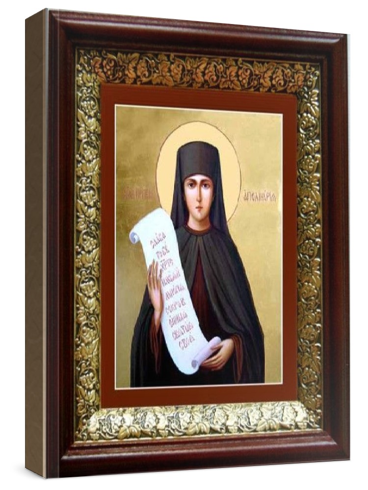Икона аполлинария (19х22), темный киот. Лик нанесен методом шелкографии на цельную липовую доску, покрытую левкасом (специальным грунтом под живопись). Использованы минеральные (природные) краски. Размер иконы без киота (см): 13х16, с киотом: 19х22. Киот (рамка) выполнен из березы и украшен басмой (узор из черненой меди в виде виноградной лозы). Икона освящена.