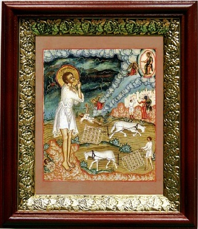 Икона артемий веркольский (19х22), темный киот. Лик нанесен методом шелкографии на цельную липовую доску, покрытую левкасом (специальным грунтом под живопись). Использованы минеральные (природные) краски. Размер иконы без киота (см): 13х16, с киотом: 19х22. Киот (рамка) выполнен из березы и украшен басмой (узор из черненой меди в виде виноградной лозы). Икона освящена.