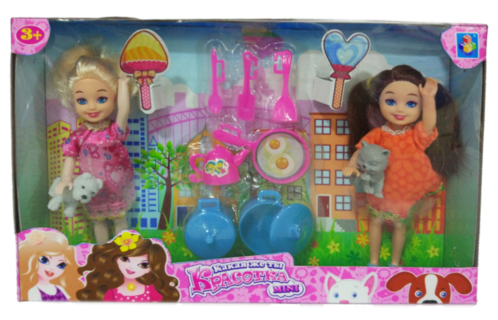1toy красотка Mini игр.набор из 2х кукол 13 см с посудкой и 2 питомцами,26