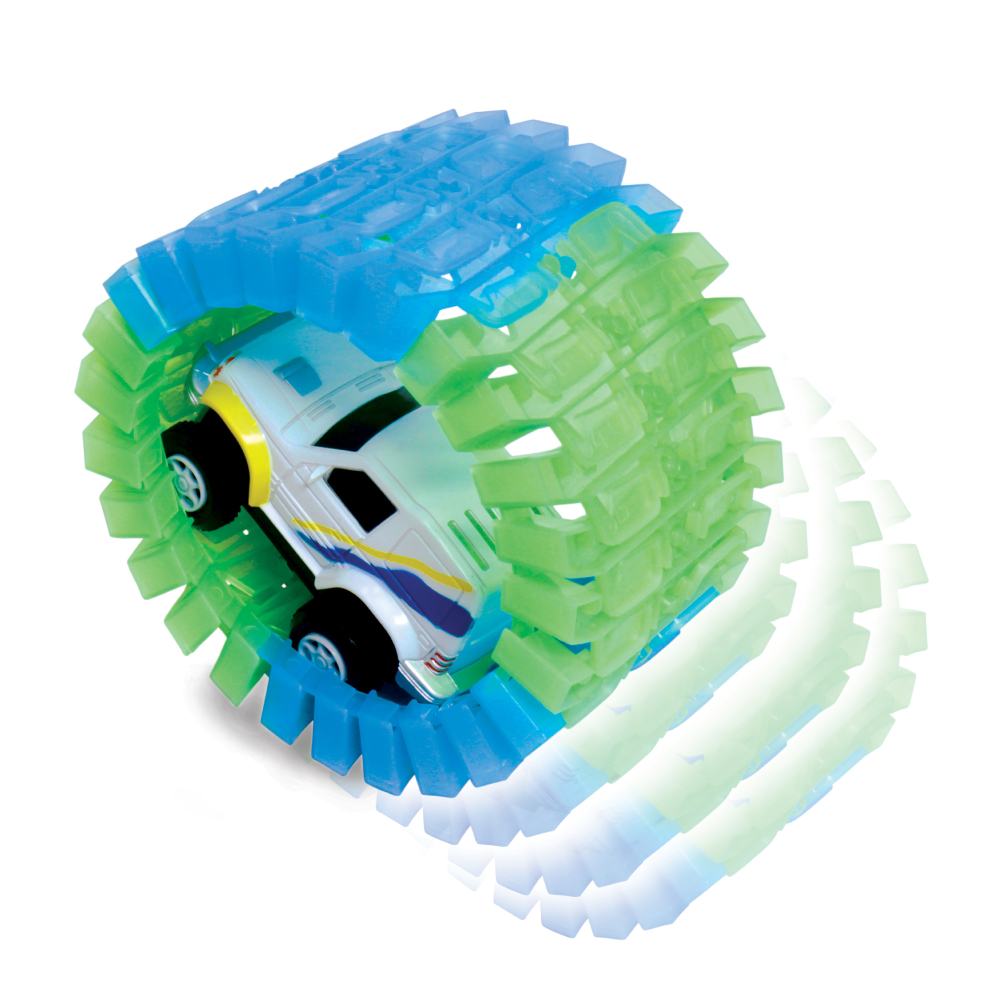 1toy гибкий трек большое пут-е 25 дет, машинка, светится в темноте, блисте