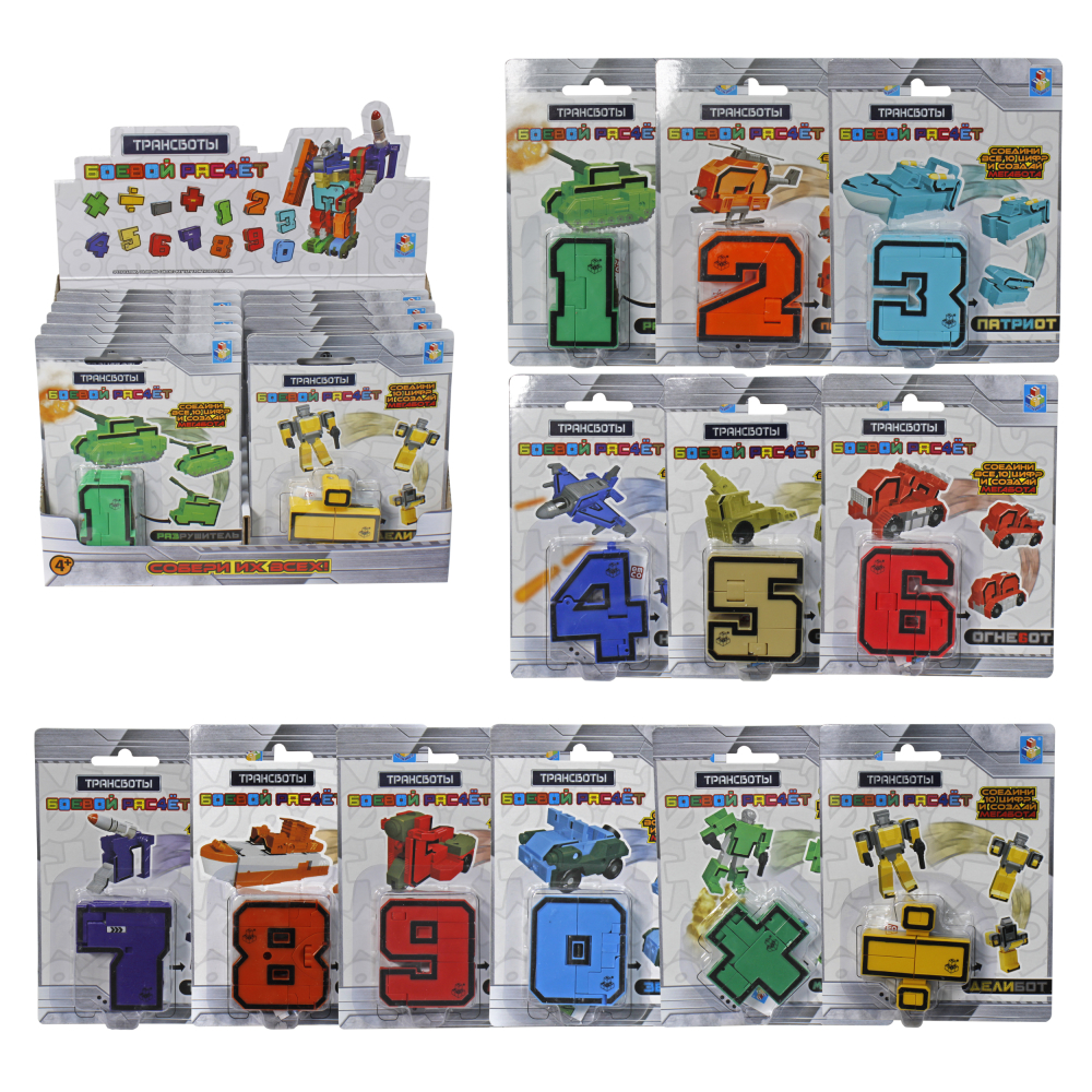 1toy трансботы боевой расчёт,12 шт.в д/боксе,цифры от 0 до 9,знаки -,+,:,х
