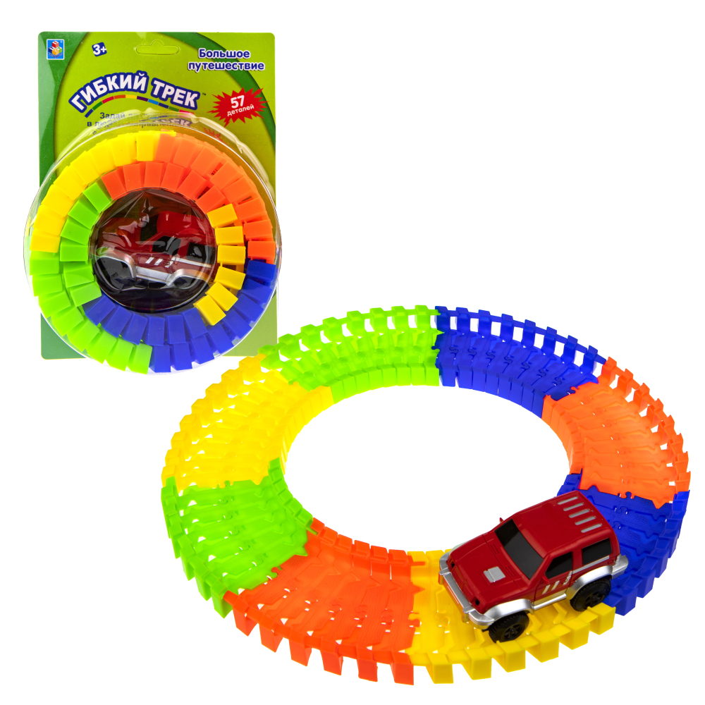 1toy гибкий трек большое пут-е 57 дет, машинка, блистер 24x17x6 см