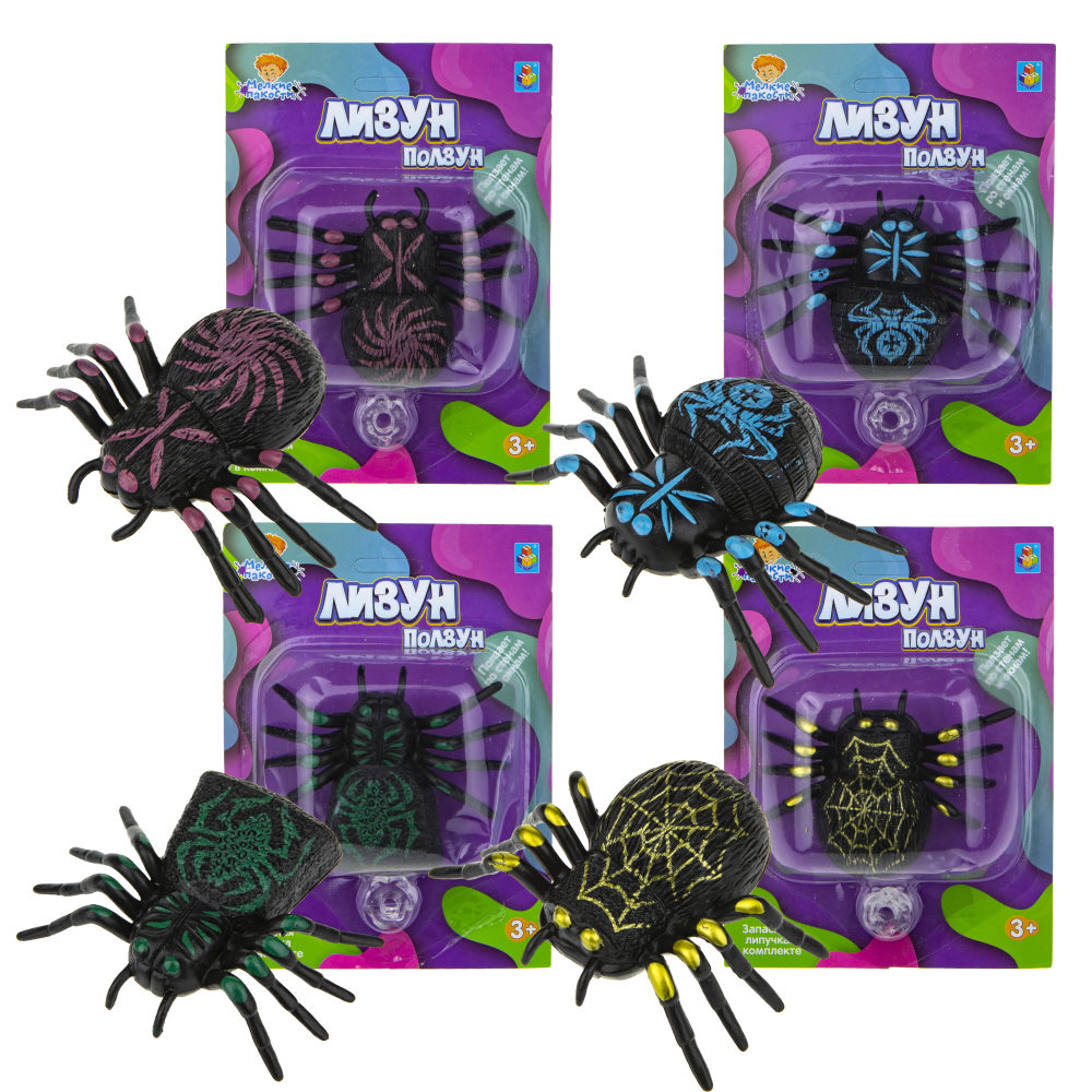 1toy мелкие пакости лизуны пауки 8*6.5 см., 4 вида в ассорт., доп.клеющийс