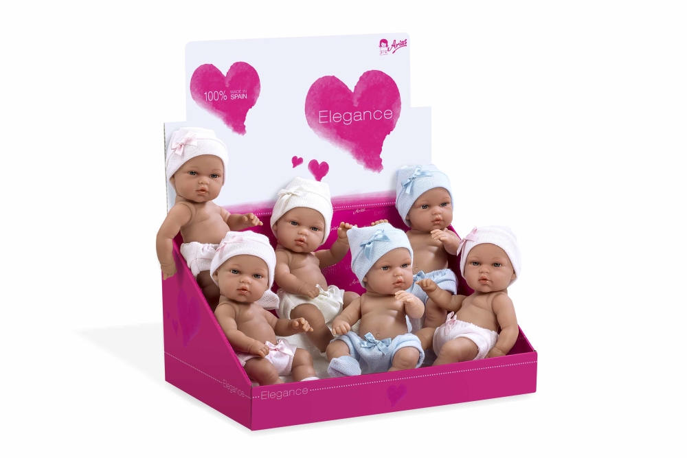 Arias elegance natal кукла винил. 33 см,шапочки с бантиками, 6 шт в д-бокс. Бренд: Arias Elegance Описание: Изготовлено в Испании! Куклы Arias коллекции Elegance, изготовленные в Испании, это куклы превосходного качества и высокой детализации исполнения каждой детали. Они действительно элегантны и тем самым притягательны с первого взгляда. Эта кукла из винила размером 33 см одета в трусики, пинетках и шапочки с бантиком. На выбор 6 видов - в одежде разного цвета. Ручки и ножки куклы подвижные. Вес: 0,572 Ширина: 45 Длина: 31 Высота: 24