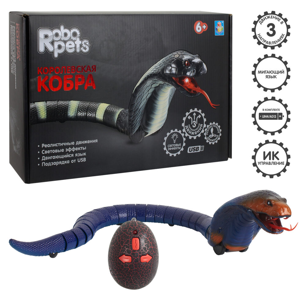 1 Toy игрушка робо-кобра (синяя) на ик управлении, свет.эффекты, Usb-заряд