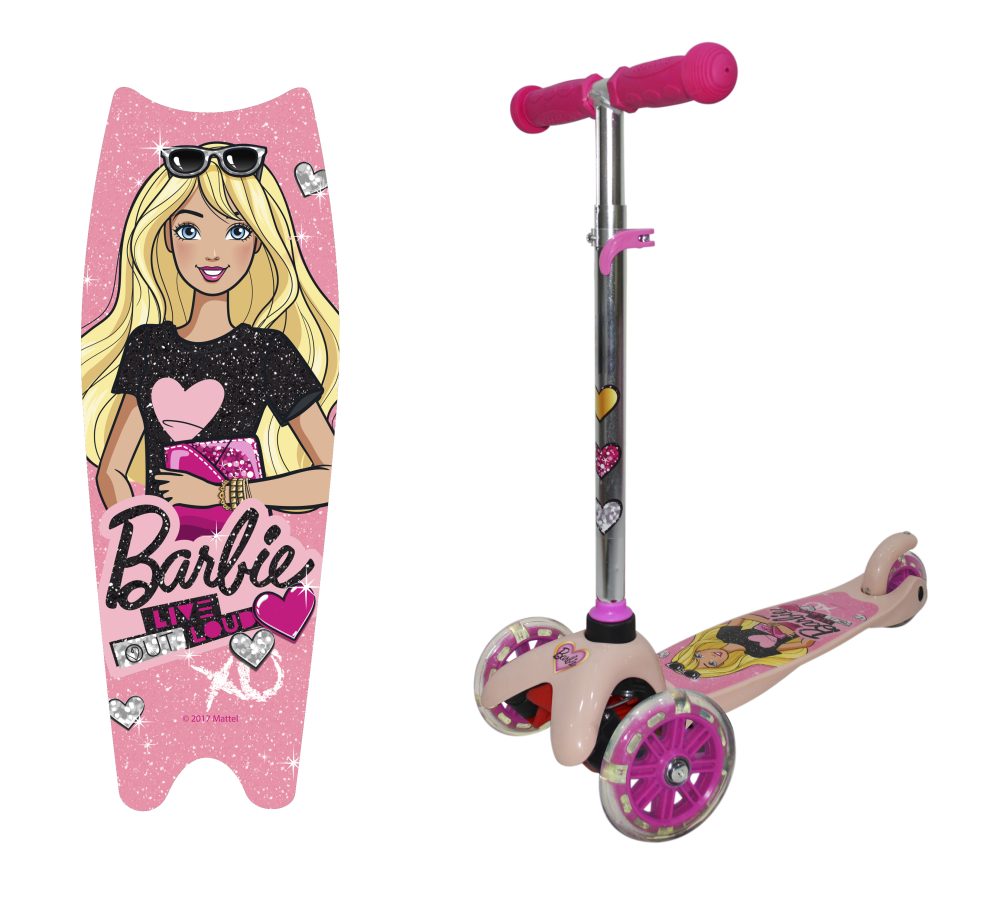 Самокат 1toy Barbie упр.наклоном, Pu кол.пер.2х120мм/90мм, алюм./нейлон, р