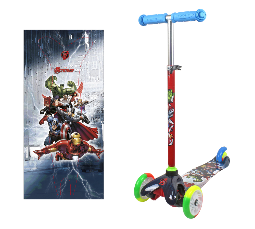 Самокат Marvel мстители упр.наклоном, Pu кол.со светом, 2х120мм/90мм, алюм