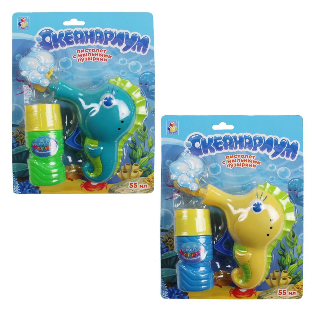 1toy океанариум, пистолет механич. с мыл. пузыр., в виде морск.конька, бут