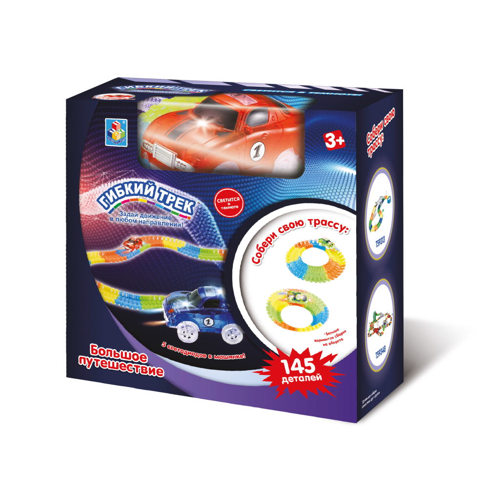 1toy гибкий трек большое путешествие, дорога светится, 1 машинка со светом