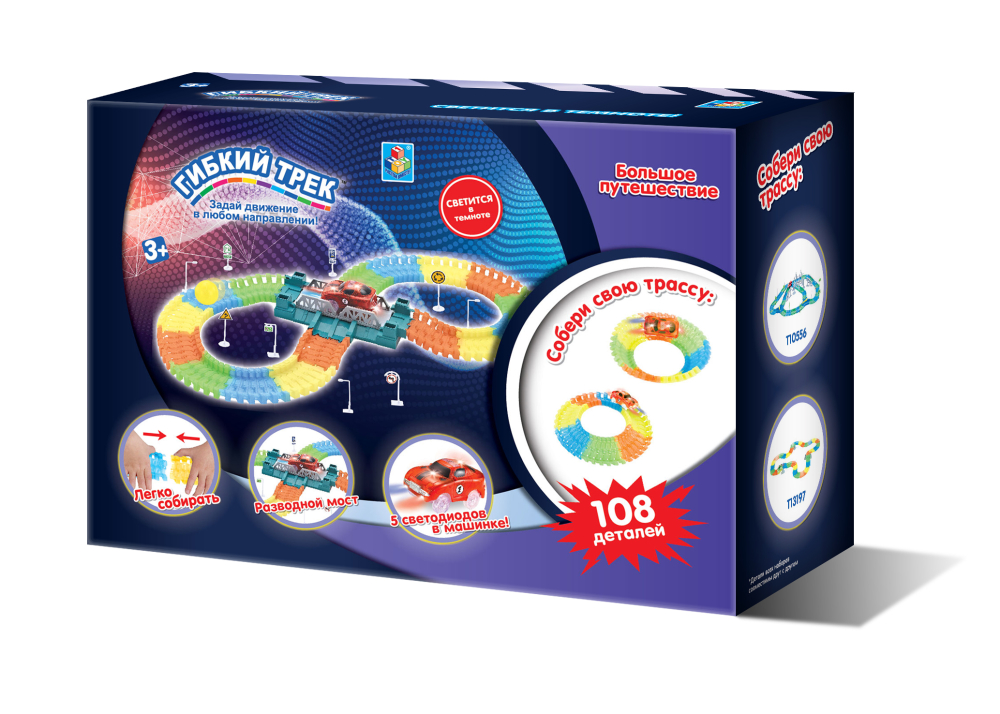 1toy гибкий трек большое путешествие, разводной мост, дорога светится, 1 м