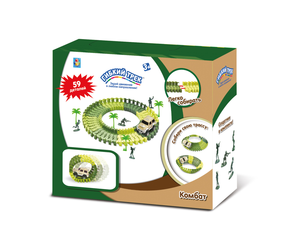 1toy гибкий трек мини-набор комбат, 59 дет, 1 машинка