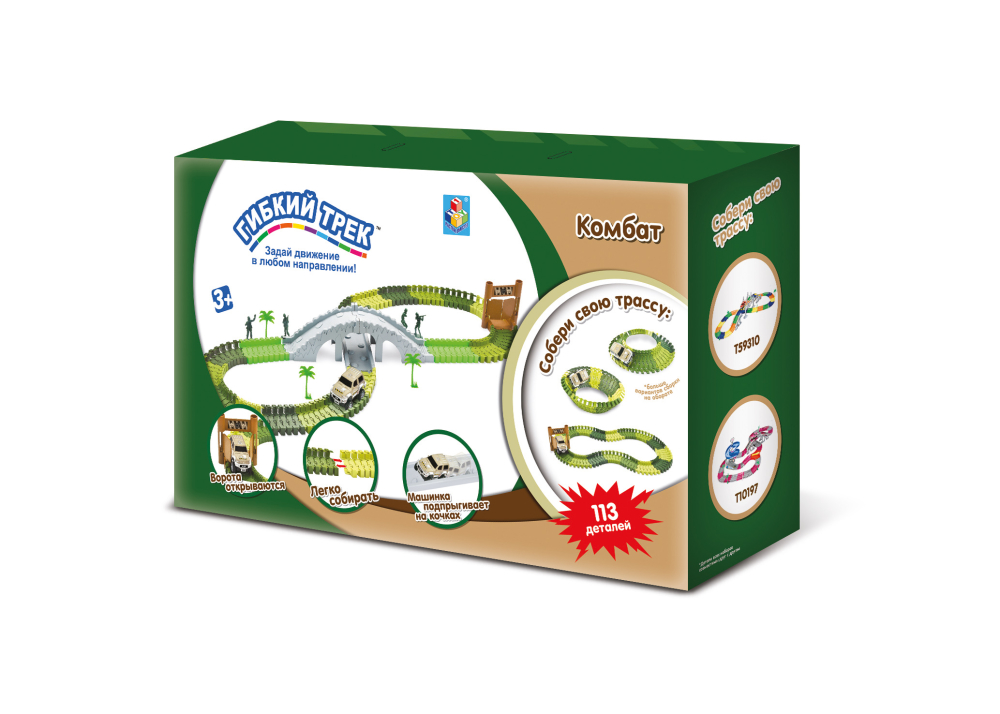 1toy гибкий трек комбат, мост, бугры, ворота, 1 машинка, 113 дет