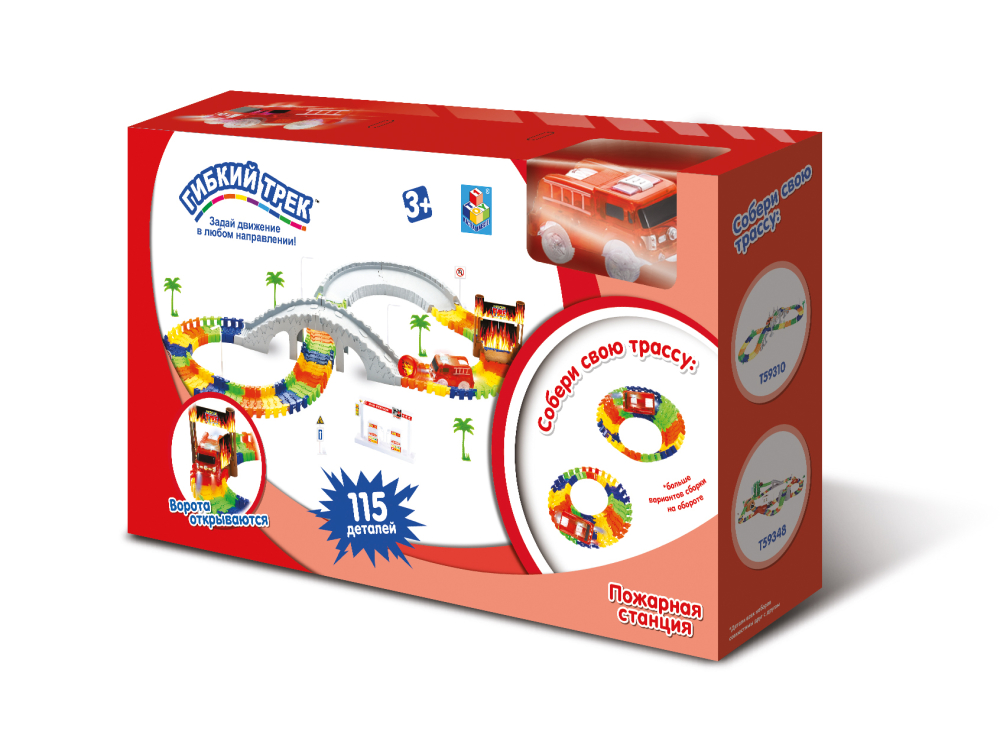 1тoy гибкий трек - пожарная станция мост, ворота, 1 машинка со светом, 1