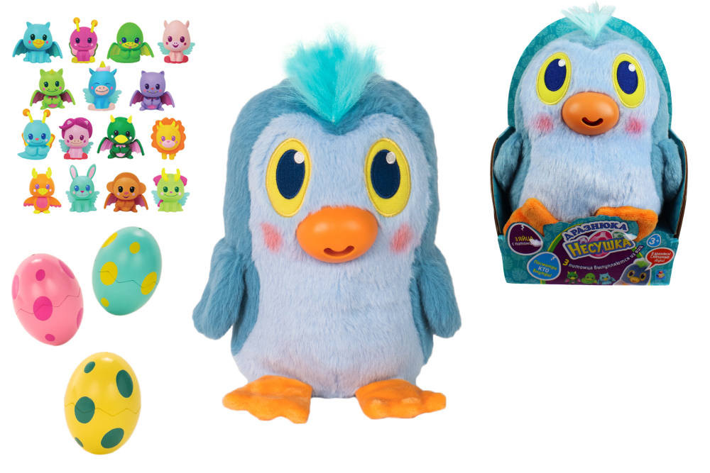 1toy дразнюка-несушка игр.наб.мягк.игр.и 3 пласт.яйца с фиг.внутри, пингви