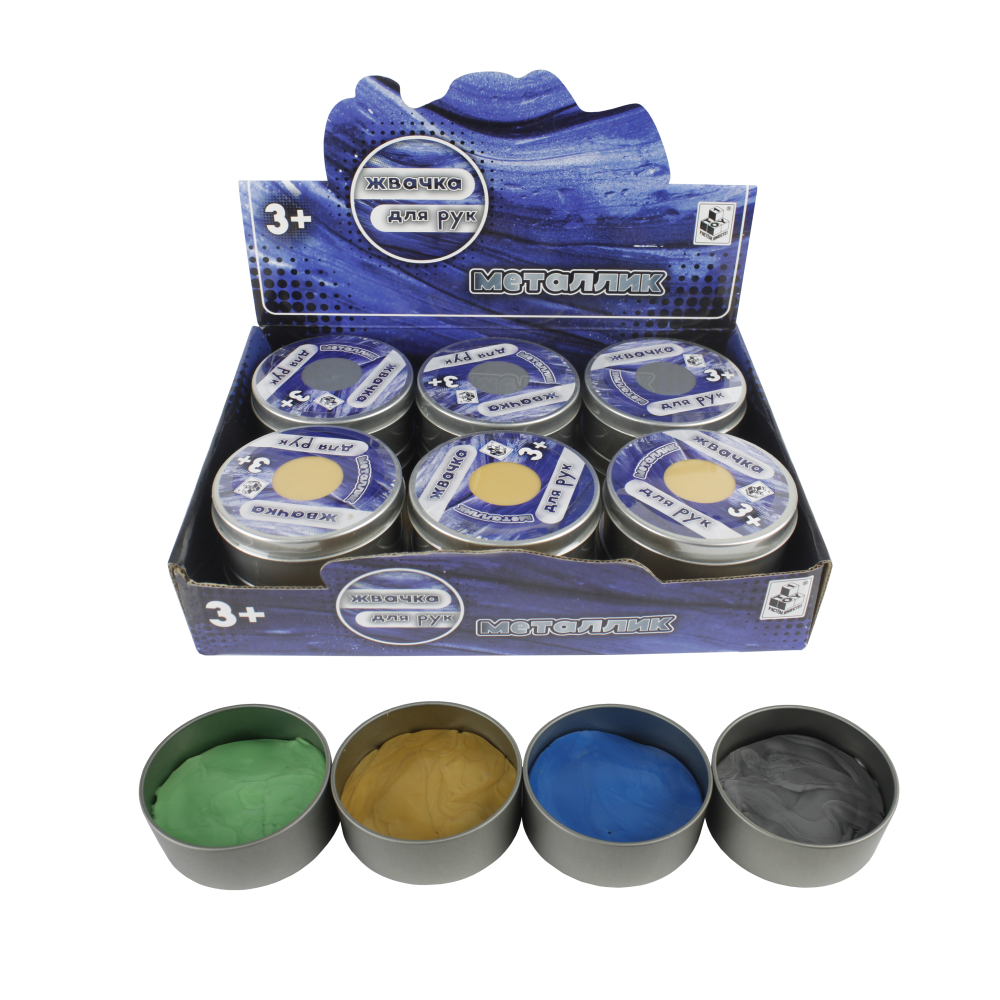 1toy жвачка для рук, 80гр, 4 цвета, металлик, упаковка - металл