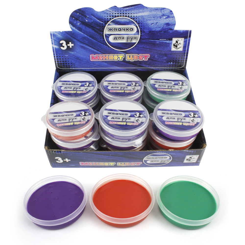 1toy жвачка для рук, 30гр, 4 цвета, меняет цвет от тепла, упаковка - пласт