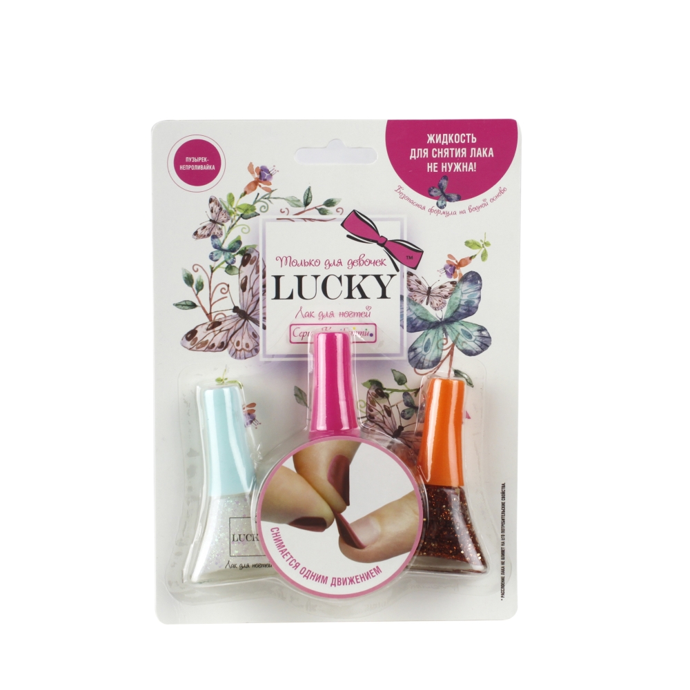 Lukky: набор из 3 лаков, серия конфетти - перламутр с блестками(#01к) + фу