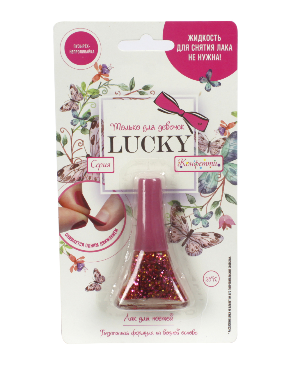 Лак Lukky серия конфетти, цвет 25к, розовый с блестками, блистер, объем 5,