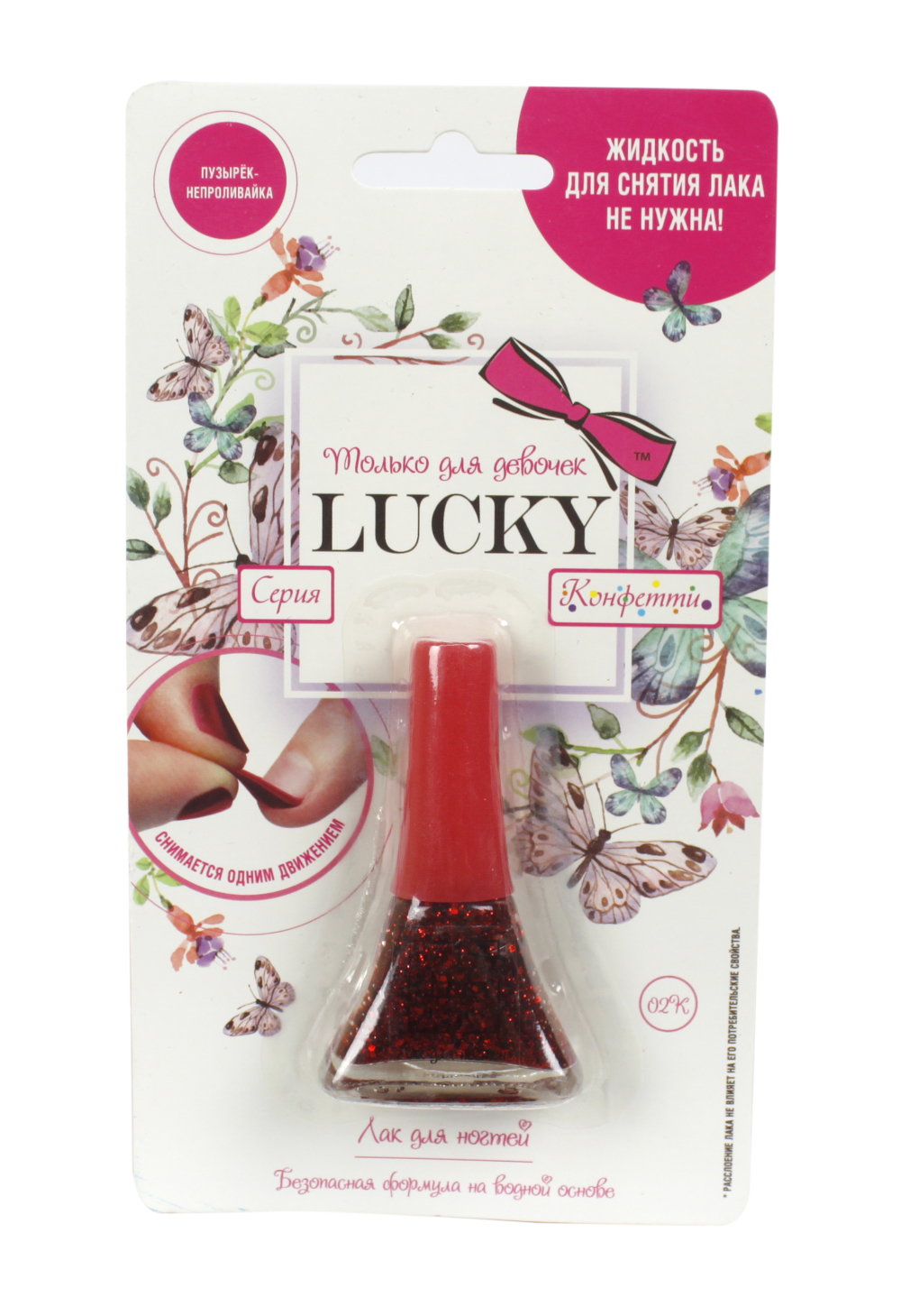 Лак Lukky серия конфетти, цвет 02к, красный с блестками, блистер, объем 5,