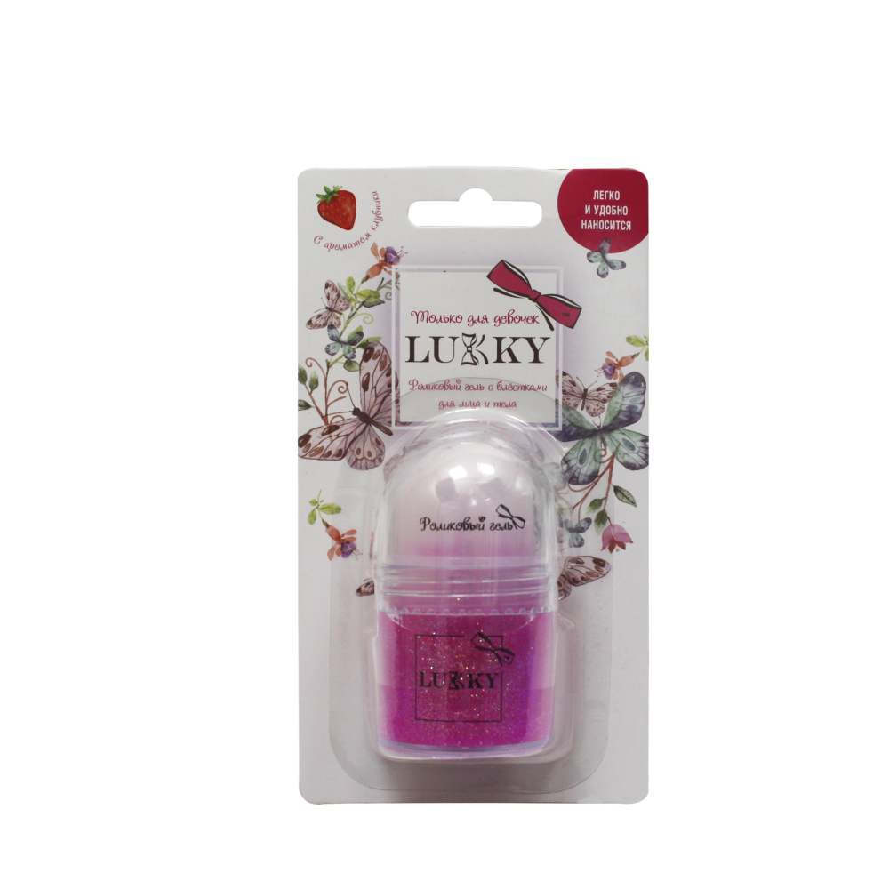 Lukky роликовый гель с блёстками для лица и тела, с ароматом клубники, ро.