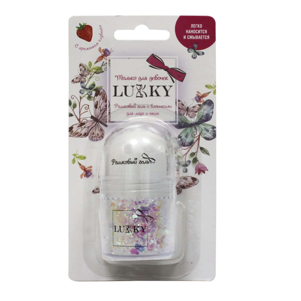 Lukky роликовый гель с блёстками для лица и волос , с ароматом клубники, ж