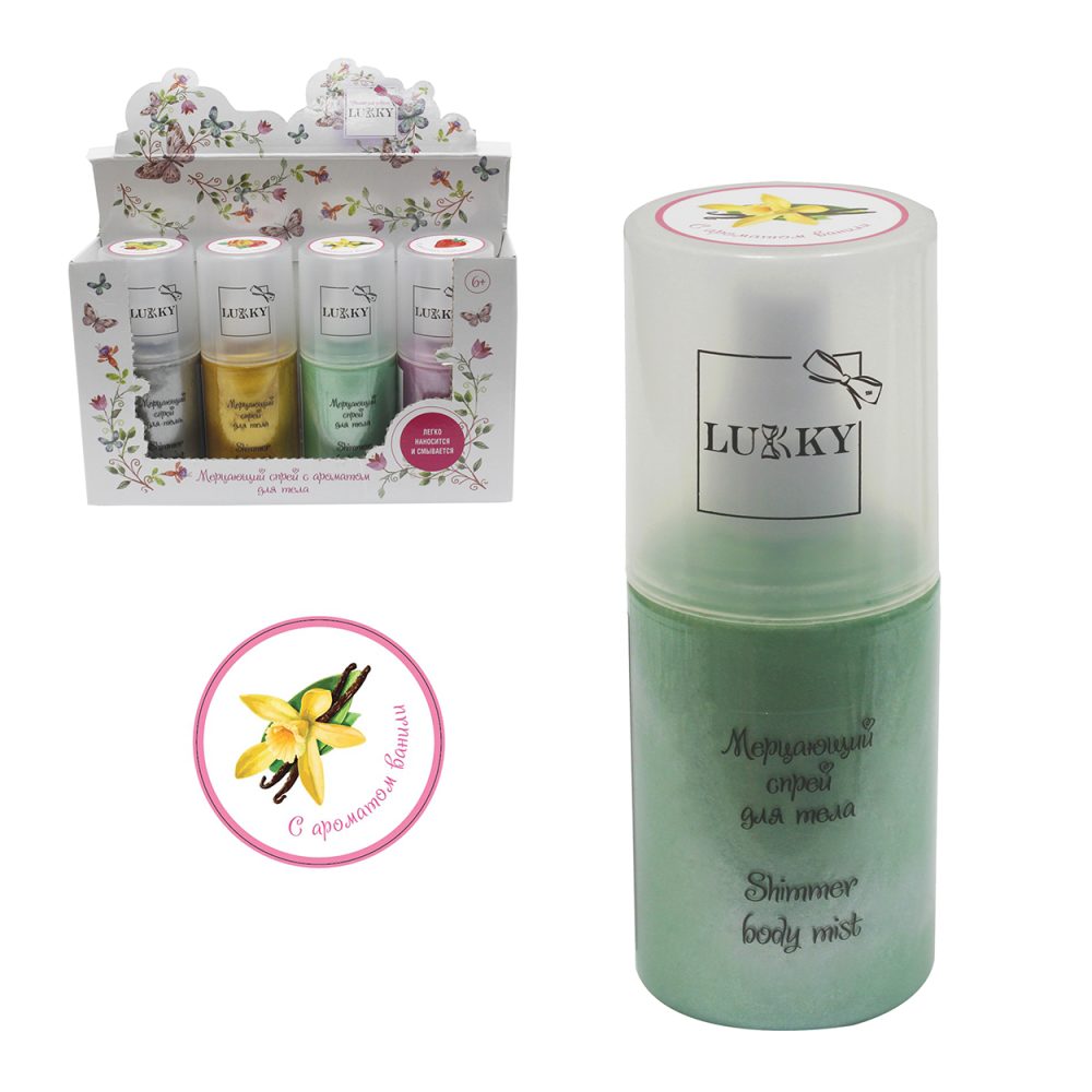 Lukky мерцающий спрей для тела с ароматом ванили, бирюзовый 120 мл, диспле