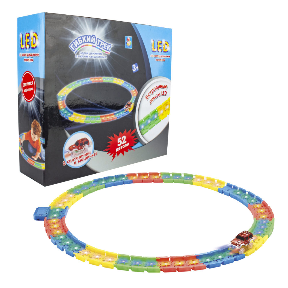 1toy гибкий трек Led со светодиодными лампами, 52 дет. (49 дет.C Led ламп.