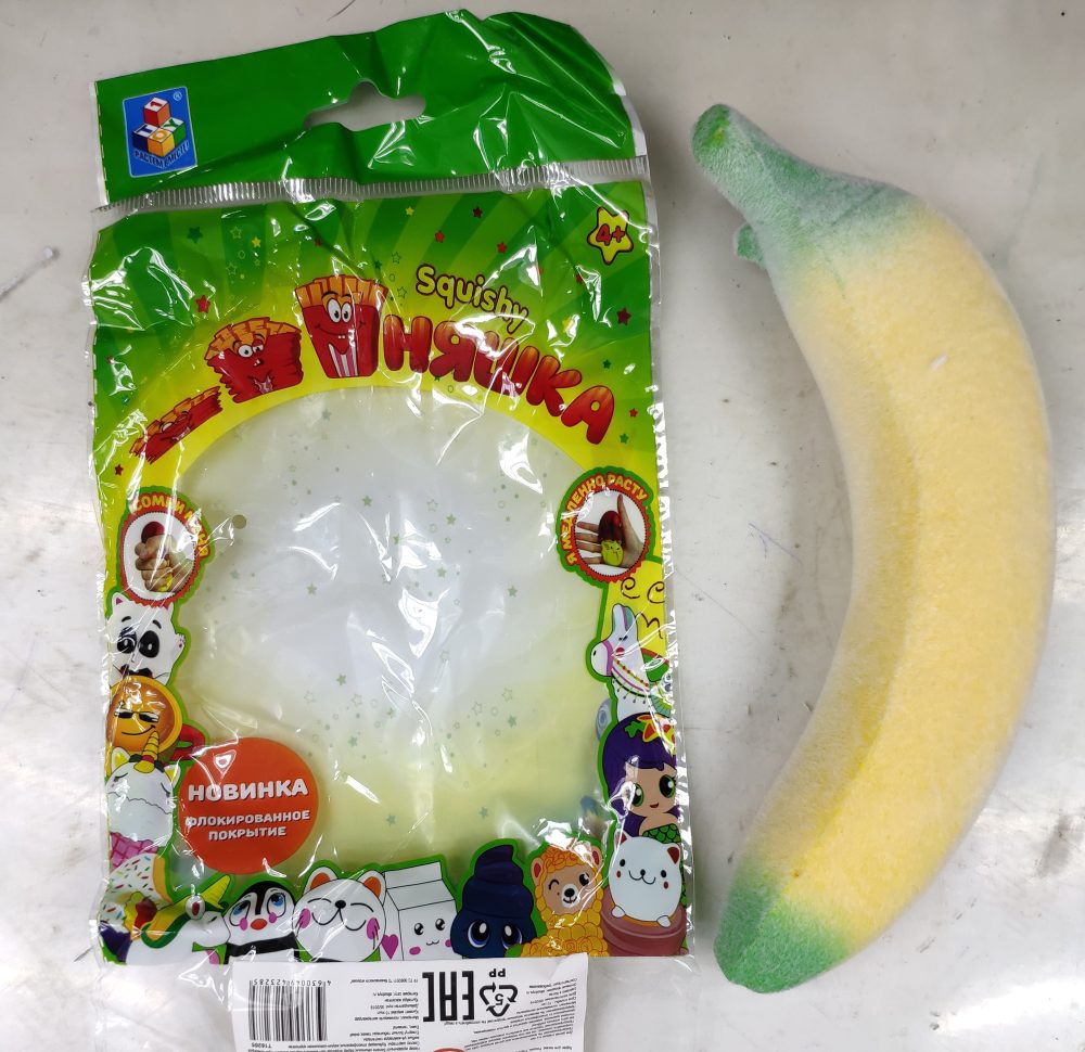 1toy игрушка-антистресс мммняшка флок Squishy (сквиши) банан, 27 гр., 18х3