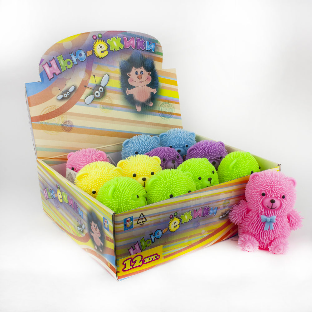 1toy нью-ёжики, медвежонок с бантом, 11,5 см, со светом, 12 шт д б