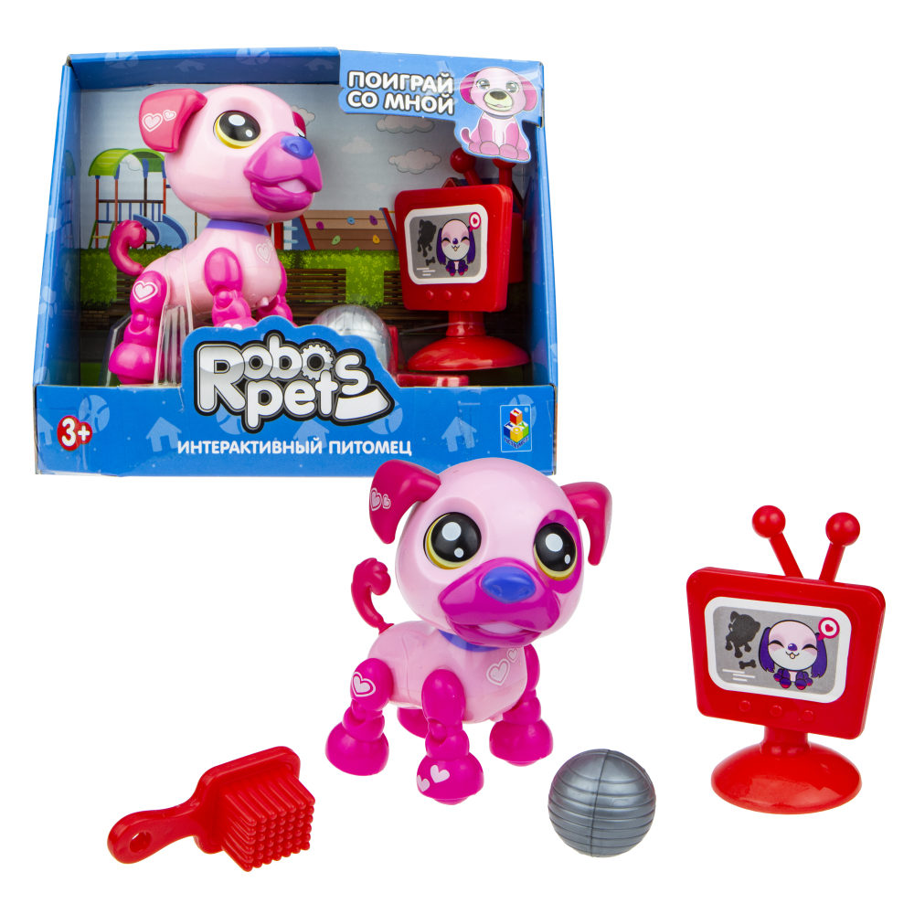 1 Toy, игрушка со звук.эффектами озорной щенок розовый, 3 бат Lr44 в компл