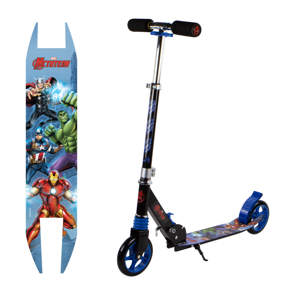 Самокат Marvel мстители 2-х кол. алюм.комби,кол Pu 145 мм,подножка,передн.