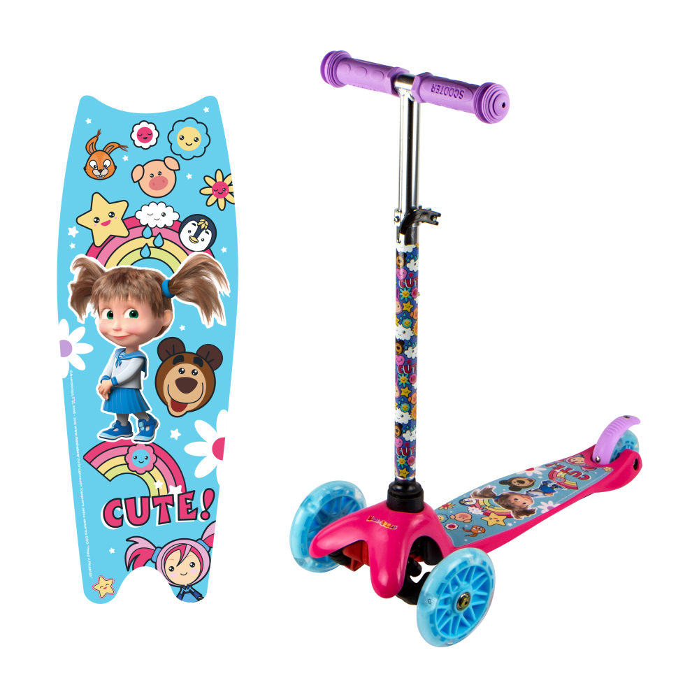 Самокат маша и медведь упр.накл. Pu светящ. кол.2х120мм 80мм,алюм. нейлон,