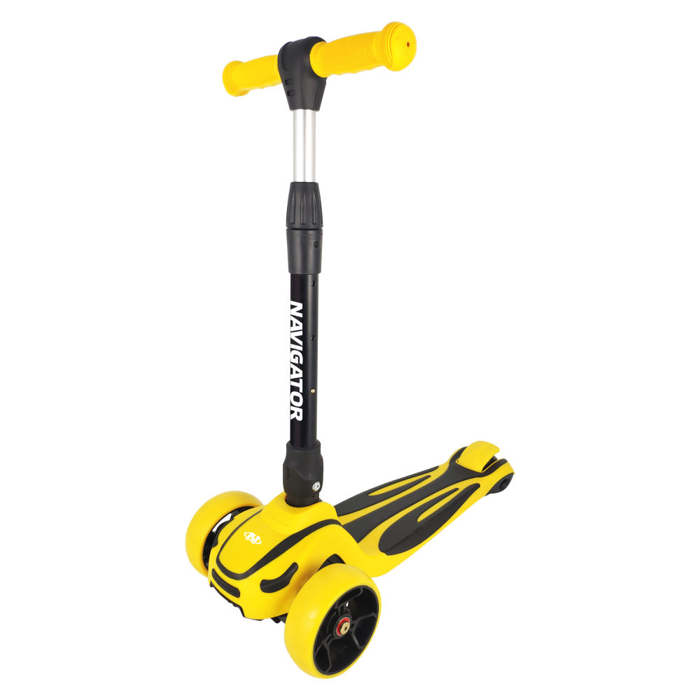 Самокат navigator упр.накл. pu светящ. кол.,2х120*50мм 80х50мм,алюм.рег.ск. Бренд: Navigator Описание: самокат подходит для детей от 3 до 8 лет. Платформа, рама выполнены из нейлона и пластика, руль самоката выполнен из лёгкого алюминиевого сплава. Узел складывания сделан из безопасного пластика. Регулируемый складной руль (до 71 см), имеет три уровня фиксации. Полиуретановые колеса со светом легко и быстро крутятся, что обеспечивает хорошую управляемость и скорость самоката. Диаметр передних колес 120 мм, ширина колес 50 мм, заднего 80 мм, ширина 50 мм. Платформа для ног с не скользящим покрытием с прорезиненными вставками, ширина платформы: 13 см. Максимальная нагрузка на самокат 50 кг. Изображения товара, включая цвет, могут отличаться от реального внешнего вида. Комплектация также может быть изменена производителем без предварительного уведомления. Описание не является публичной офертой. Убедительно просим Вас при выборе модели проверять наличие желаемых функций и характеристик. Вес: 3,448 Ширина: 29 Длина: 61,5 Высота: 16